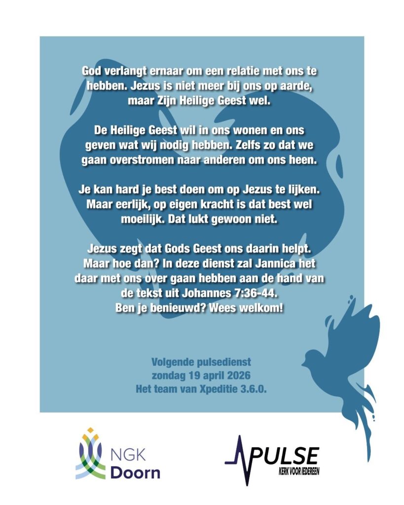 Jannica van Barneveld komt spreken over het thema: Overstromen, leven door de Heilige Geest. De dienst begint om 11:00 en vooraf (10:15) is er koffie. Welkom!